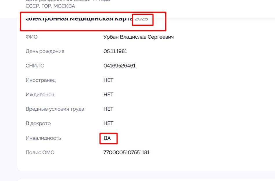 Его ЭМС за 2025 год. То есть да, как и предпологал Аудио РВ, он получил инвалидность, и, возможно, на это сейчас живет. Информация максимально актуальная-2025 год