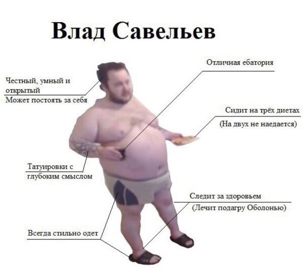 Почему никто не отмечает прекрасное в природе существования Влада Савельева? Все кипят ненавистью, но со временем приходит осознание того, что человек смог пустить всю свою жизнь в нихуя, просто опуститься ниже плинтуса - а это позыв встречающийся каждому человеку. Влад прекрасен в том, насколько смог донести изуродованность жизни и что это вполне реально, пока мы все боимся потерять работы, отношения или комьюнити, Влад просто взял и сжëг всë, а на подобное нужно всë равно перешагивать через себя. Это впечатляет, надеюсь Влада гайдут и доебут с интервью, рано илм поздно это точно будет