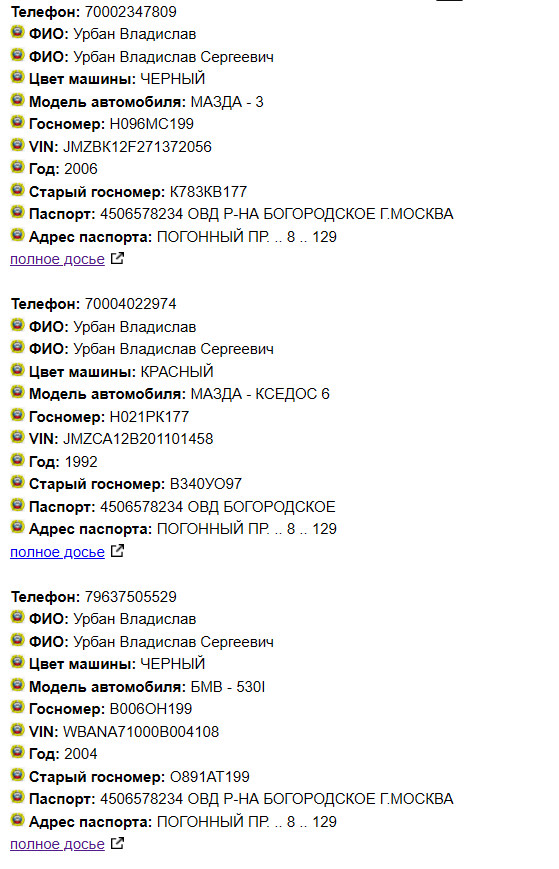 >>26114064 >ных о пересечении границы после 23 >3)есть данные о его нахождении в РФ после 23, в том числе данные с симки > Если пробивать по адресу регистрации его матери-владыки Урбан Ольги Николаевны - Владос в МСК по ее адресу не зарегистрирован (проверено)