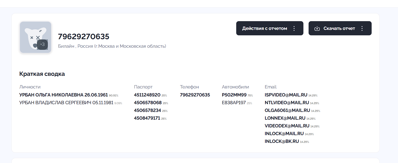а вот локацию и родственные связи он выдал точно. Как и авиационные билеты. То есть можно сказать теперь со 100 вероятностью одну вещь: Урбан точно в России. Это железобетонно
