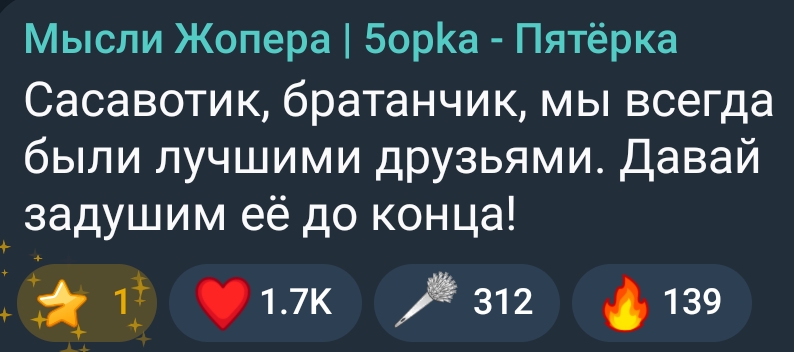 >>25792110 смысл состоял в том что он отдает жирному хайп матч,а тот в свою очередь не поддерживает сидя с ним до конца стрима,а съебывает после хайпа,получил выгоду и смысл уже сидеть нет,а Вадим в силу своей доброты дофига делает чтобы этих долбаебов на шее тащить и 6 лет ломал голову и пытался купить эти права.Дело его конечно,но это так грустно выглядит со стороны,не хотел бы я себе подобных "друзей" как его окружение