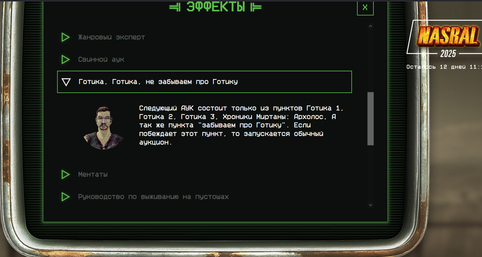 Из-за короткой длительности всего ивента, у стримеров есть возможность рероллить по собственному желанию любые игры, время прохождения которых превышает 30 часов. Учитывайте это при заказе игр. `},{title:"Запрещенные игры",description:` VR-игры.