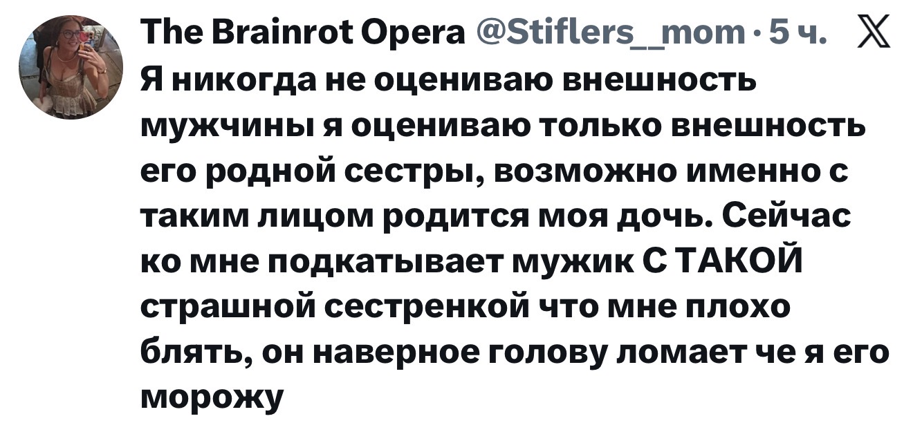 Не, если выбирать между привлекательной пустотой с милой улыбкой, и унылой пустотой с высокомерным кривым ебалом, выбор очевиден. Сисам пора перестать фантазировать о внутреннем мире, у вас точно его нет.