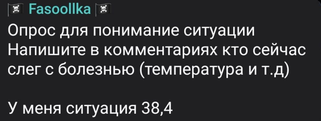 >>25810992 Так она сегодня и не ходила в зал. Голосовое у нее в беседе еще днем говорит что заболела думает после бани. Но походу это с др все болеет там много кто из гостей заболел.