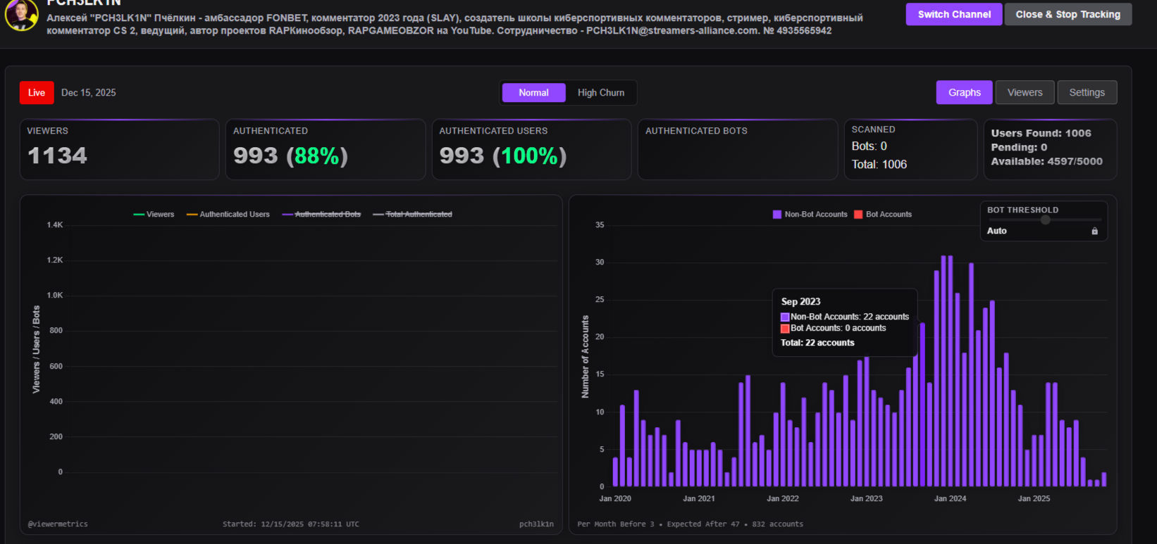 >>25799116 Ты точно на тот твич тракер заходил? У нее перед слеем были 7 стримов по 10-16 к онлайны, сразу после слея 10-13-15к на каждом стриме а как началась опять шумиха с накрутками стало 2.5-3.3к уже 5-й стрим ))))) только был один стрим где Блебас залетел к ней в Дискорд и там в моменте на 10 минут было 6 к