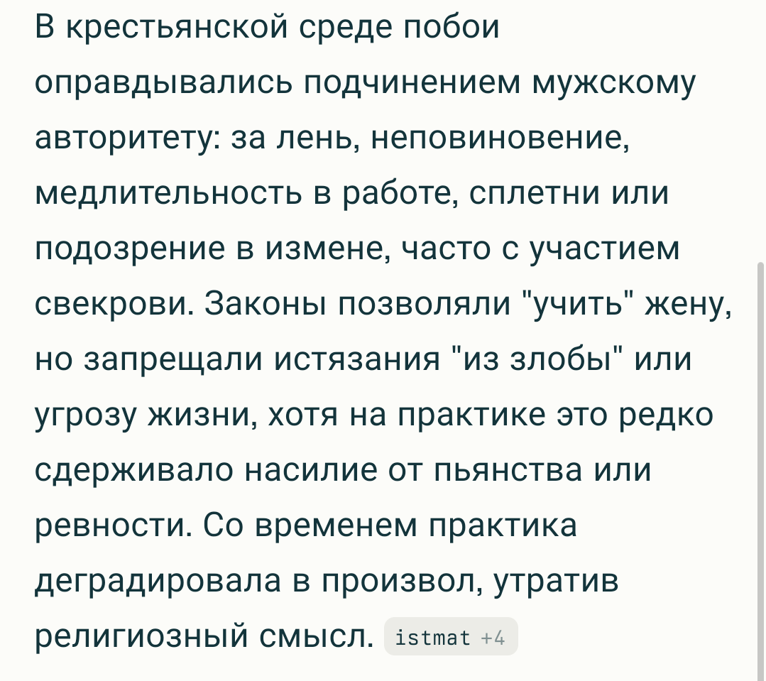 >>25811804 А ещё бабу надо ПИЗДИТЬ, на Руси об этом издревле знали. Кавказцы до сих пор практикуют, поэтому бабы от них текут. Бабе нужны эмоции. Кулак в морду даёт их ярче всего.