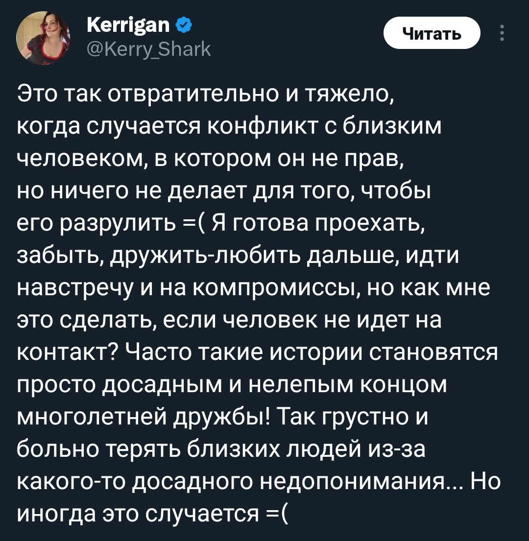 >>25805570 Давно этот пост был? Думаю речь про Юру финского. Но конечно позиция её доставляет — типа он не прав и не хочет это признать, но так она готова идти на компромисы какие-то. Напомните отчего же у неё нект друзей и даже любимве хорёмбы и те дохнут от её общества?