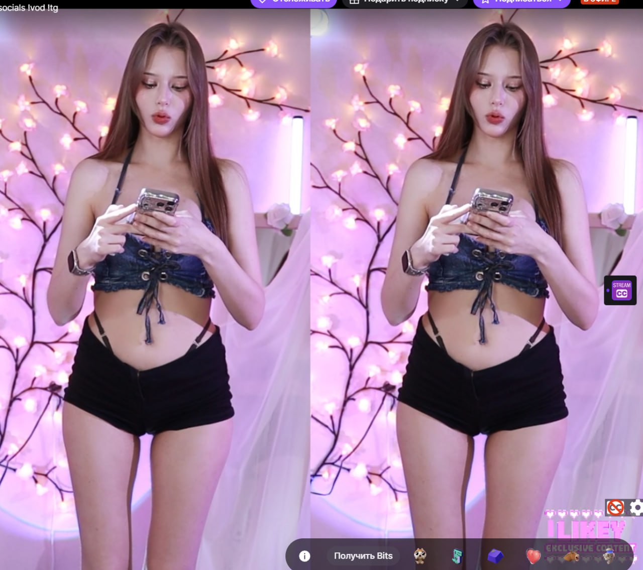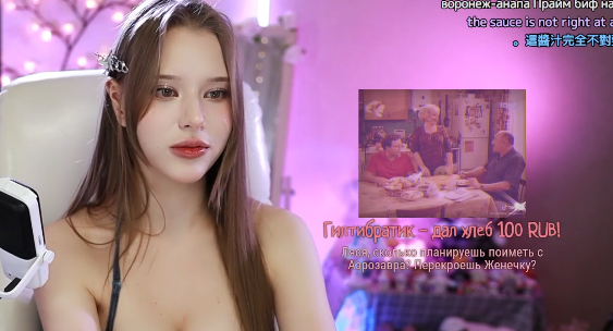 Виолетта Витальевна Крючкова или Lyasyaa (Ляся), 25 лет (20.07.2000), живет в Москве, переехала из Пятигорска, родилась в Кисловодске. Рост 172 см. Основу аудитории составляют иностранцы, русских около 30%. Виола активно использует многие фишки корейских стримерш, в том числе и увеличение груди. Основной контент - Джаст чаттинг (где-то 60 процентов на ангельском и 40 на русском), сексапильные танцульки и редкие ИРЛы.
