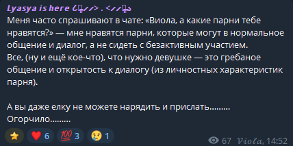 Заврик зря время теряет с Лясей, да, девочка ксимпатичная, но продинамит его 100 %, дальше онлайн танцулек дело не пойдет. Заврику надо присмотреться к Лизе, подруге Ненормовой. Чуть денег в нее влить будет топовая шаболда, любой каприз исполнит. А уж как пердаки начнут гореть у двачеров с ненормовского треда, если Заврик начнет денег Лизе закидывать. Прям хочется это увидеть...