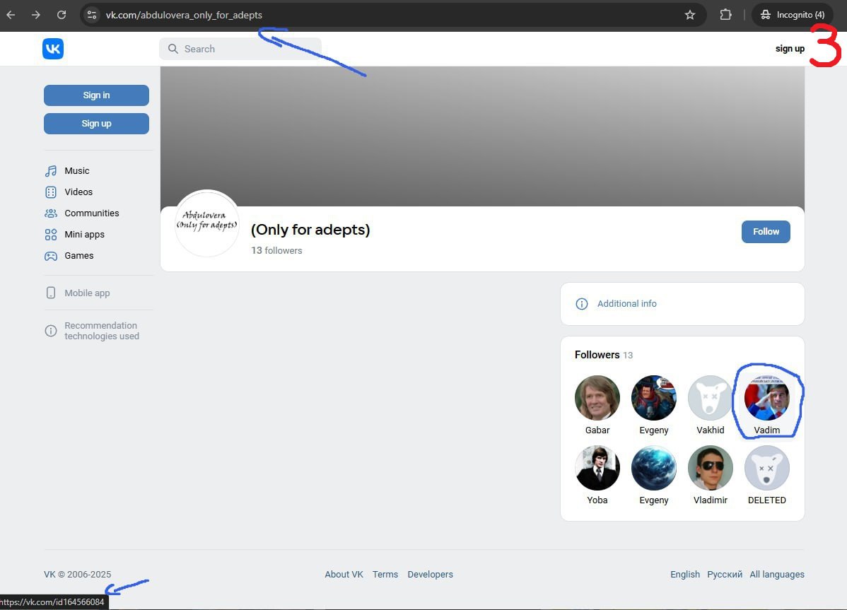 6. По телефону отца +380671514855 находим страницу ВК vk.com/id164566084, которая в большинстве своём дублирует подписки и репосты оригинальной страницы Павла Эрик Принс. Так же, по данной странице была найдена почта: [email protected], логин которой полностью совпадает с почтой из пункта 3. Также, этот аккаунт состоял в группе "abdulovera_only_for_adepts" (скрин 3). После нашей публикации на 2ch профиль был удалён. Так же, по телефону была найдена почта [email protected], которую Павло создал для своего отца. Отца Павла можно найти в instagram по этому же логину: https://www.instagram.com/k0907941956