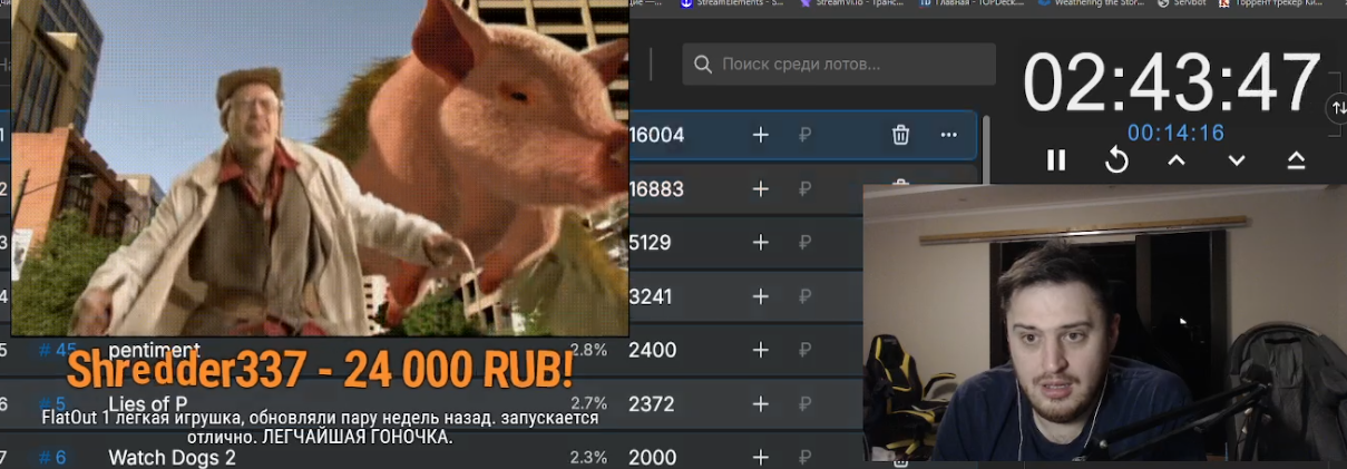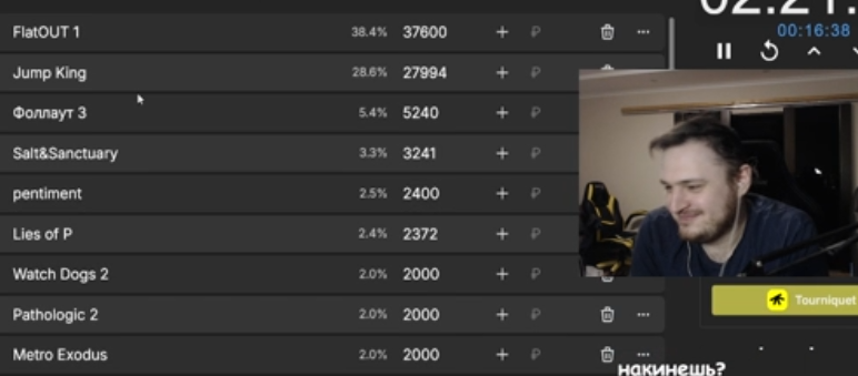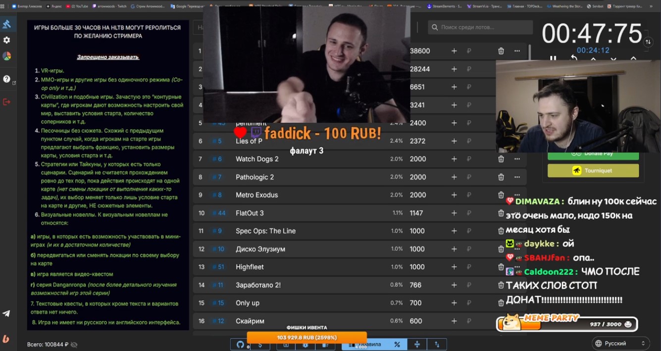 у флешки донатов 5к набирается, ему его зрители (хз кто это, возможно его телка) донатят на нфс которые он и так проходить собирался, там сразу +100 очков за каждую игру, мне кажется стоит кикнуть его даже щас чем ивент портить