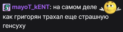 >>25820652 смешно как этому куколду уже нечем срать и он вот этот кринж срет где нет логики, там человек даже не байтит, он реально бегает по твичу в поисках гайки и мевсу, сталкерит этого мевсу чтобы что-то высрать для поддержания очередного куколдофорса, смотрит стримы рыжего на макс громкости и вслушивается что бы услышать гайку, походу с прошлого форса у него шиза еще больше обострилась