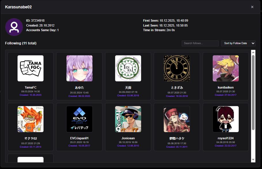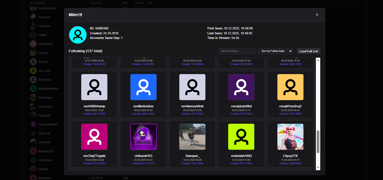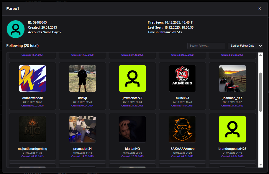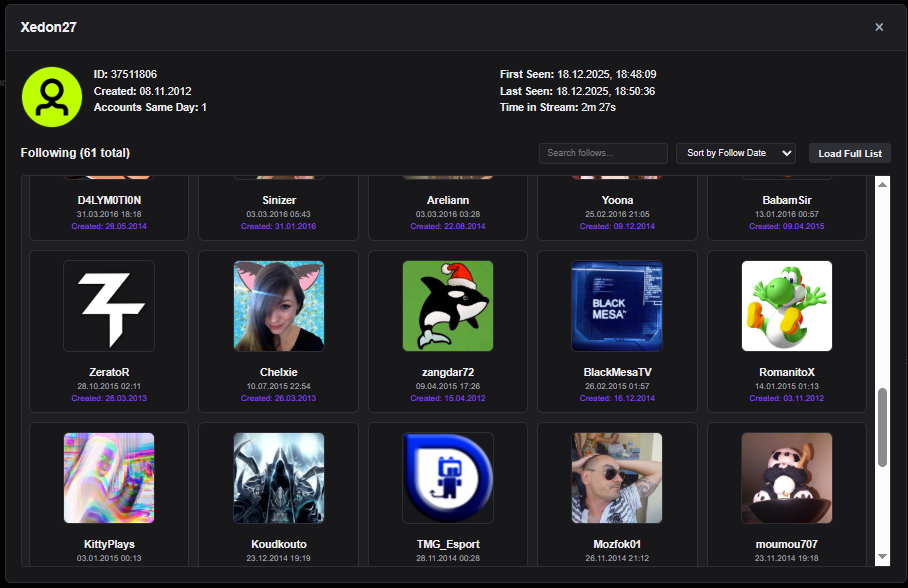 Вот такие у маслика(друг Эвела) зрители сидят. Это если че первые попавшиеся отсортированные по дате и таких у него дохуя, просто много скринов не выложить посмотрите сами. Они вообще не подписаны на русских стримеров, а некоторые даже подписаны на таких же ботов и сами являются то немцами, то португальцами. У Мокривского и Эвела такого нет