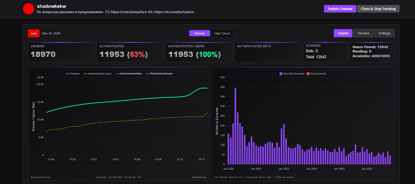 >>25824097 тут проблема не в этой накрутке дешёвой, кек давным давно крутит нормальных ботов, проблема в цифре 13к, у него на соло стримах ласт время меньше 20 не бывает, а тут гп. а с накруткой этой это ошибка просто какая то, он не стал бы таких ботов крутить, но эта ошибка и спалила.