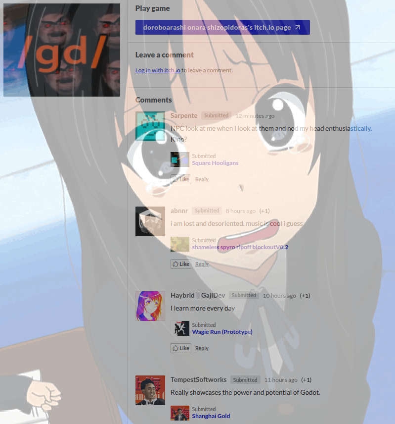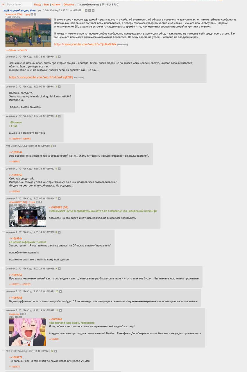 Слив катку в визуальные новеллы ренпаепетушки из /ruvn/ уже почти добились закрытия раздела посвящённому разработке видеоигр /gd. Но они не были готовы к тому что Александр "Птааг" Головань (пророк треда Голова дай денег) запишет жалобное видеообращение к Абу и тем самым сохранит существование раздела /gd!
