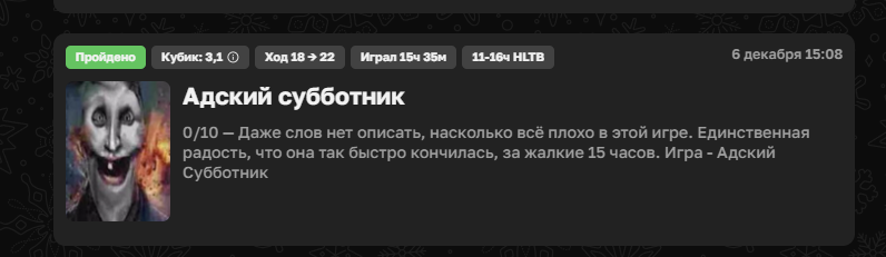 Ивент мы ненавидим игры 14 дней 7 раундов по два дня на раунд Стримеры должны как можно быстрее и по свинячьи пробежать игру, когда кто-то закрывает раунд раз в час оставшиеся участники начинают терять очки Можно смотреть гайды, слушать подсказки, скипать диалоги, но при реролле сгорают все твои очки. Заказывать можно только самые каловые и ненавидимые игры