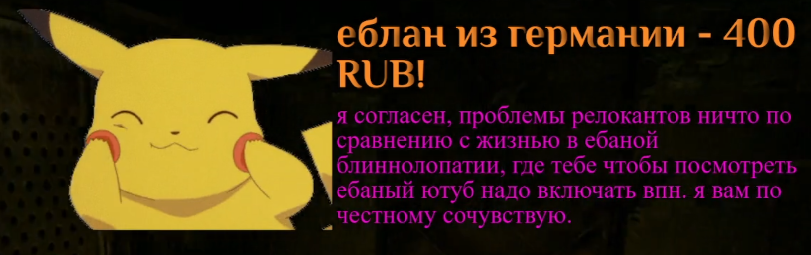 >>25827392 подсос подсоса подсоса доеда делает обзоры на нижний нтернет и переводит драму омерики на рузке язык ну типа там как хасан свою собаку током ебашил перевел барнаульцам будто им не пох итд гигатаракан доед