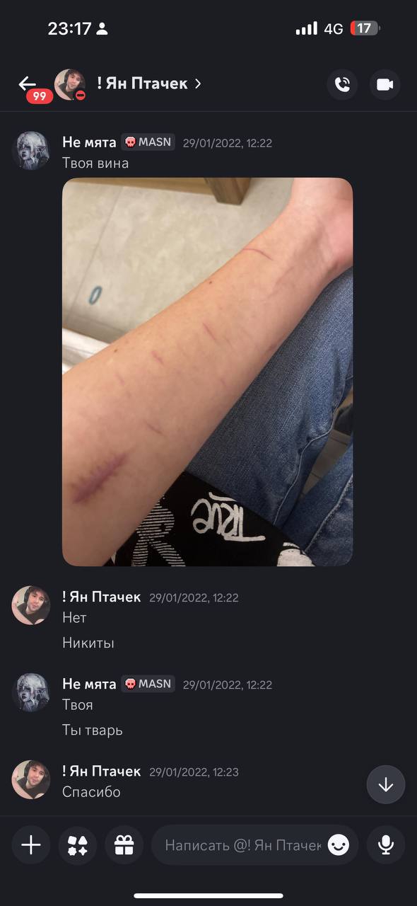 Бебебе Еврейку все отшили, бебебе об этом знаю только я, пруфоф нету никаких, бебебе кину ещё в сотый раз фото с порезами старой давности, бобобо блин ещё и все ленты в моем щавеле ну это все бред я Настя я права, пойду попрошу у старых челов которые мне донатили на интимки баул мне купить а то мать плохая такая мне его не купит, я что больная работать в 30 лет