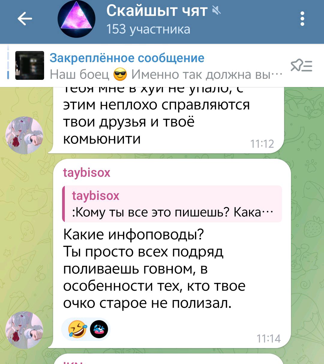 У меня от ваших шизоразборок флешбеки тех говносайтов из десятых, где анонимно задавали вопросы, а автор пытался угадать, кто из его знакомых его спрашивает