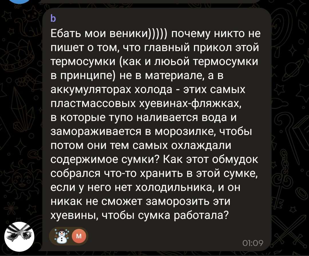 >>25834317 так сумка это не вместо холодильника, а в дорогу взять что-то из холодильника. без холодильника такая сумка в принципе не нужна. совсем отупели в тик токах своих и шортсах?