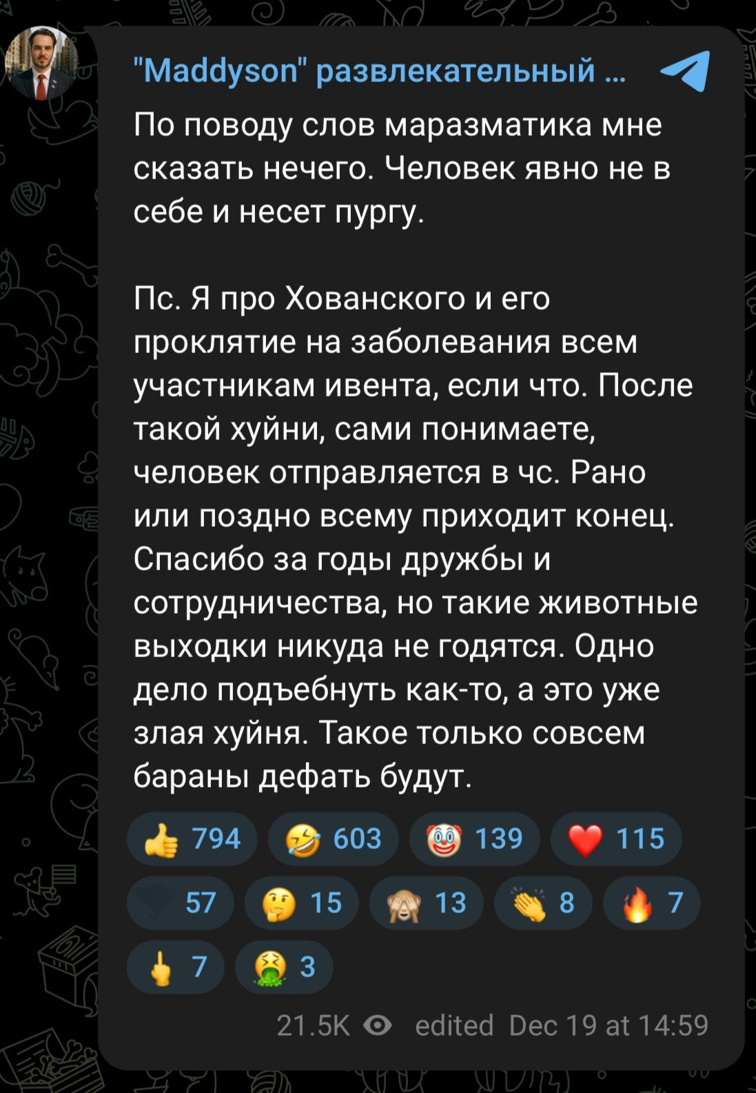Друг, Юра Хованский больше нерилейтед. На первый раз предупреждаю, но в следующий будут репортить. Маразматик (не Илюха) в хрю