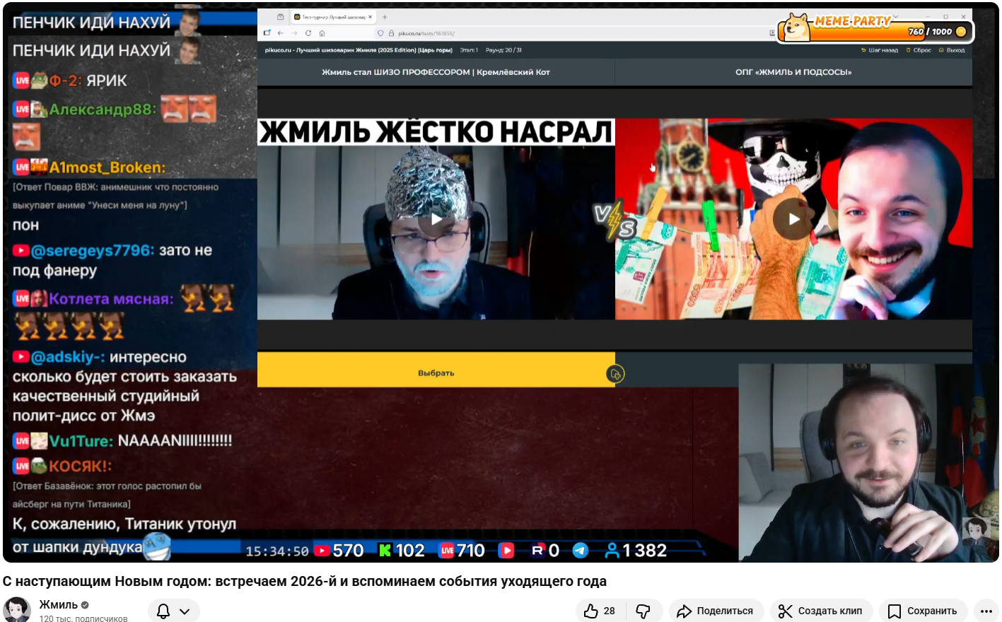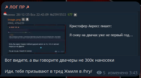 >>25893766 Прости, но назвать медийной сеткой непереодичные посты в основной тг на пару тысяч просмотров, время между которыми могло измеряться месяцами (особенно с конца 22 до 24 года), и посты в дополнительном тг канале на пару сотен просмотров назвать медийной сеткой не получается. А с 24 года пошли регулярные стримы, репосты в дружественныэ тг, ведение бусти (там с 21 по 24 тоже был перерыв, а сейчас 300 сотни подписчиков платеых с минимальнойсуммой 140р в месяц). А к 25 как раз пошли коллабы, ха год он успед постримить из плюс-минус медийных: 3 раза с Изотовым, с Росовым, Жмилем, коричневым славиком и даже Штефанова на стриме умудрился передушеить в живом диалоге. Вот это уже больше похоже на начало ведения сетки