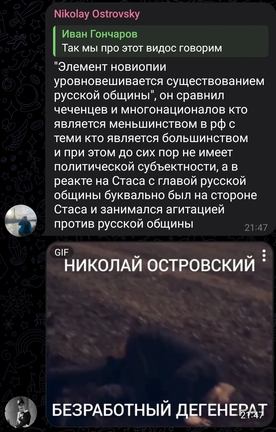 Бля, а я правильно понимаю, что Криштоф настолько тупой, что думает, что если человек говорит про "Право сильного", то он буквально блять поддерживает того, кто сильнее и болеет за него? А не просто описывает блять объективную реальность, не давая этому никакой личной оценки. Ясно Ну и да, забавно, что он даже видосы не посмотрел, а просто поверил наслово пиздаболу Островскому
