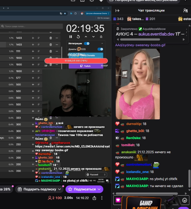 >>25846462 просто посмотрите на этого пиздабола дениса хамитова пидарас с пришитыми сиськами в декабре из 21 дня стримил только 11 дней, и ВСЕ стримы не больше 5 часов почти, только 1 стрим был 6 часов то есть эта хуйня не стримит нихуя, еще и что-то пиздит и все это афк контент, где он просто смотрит сериалы