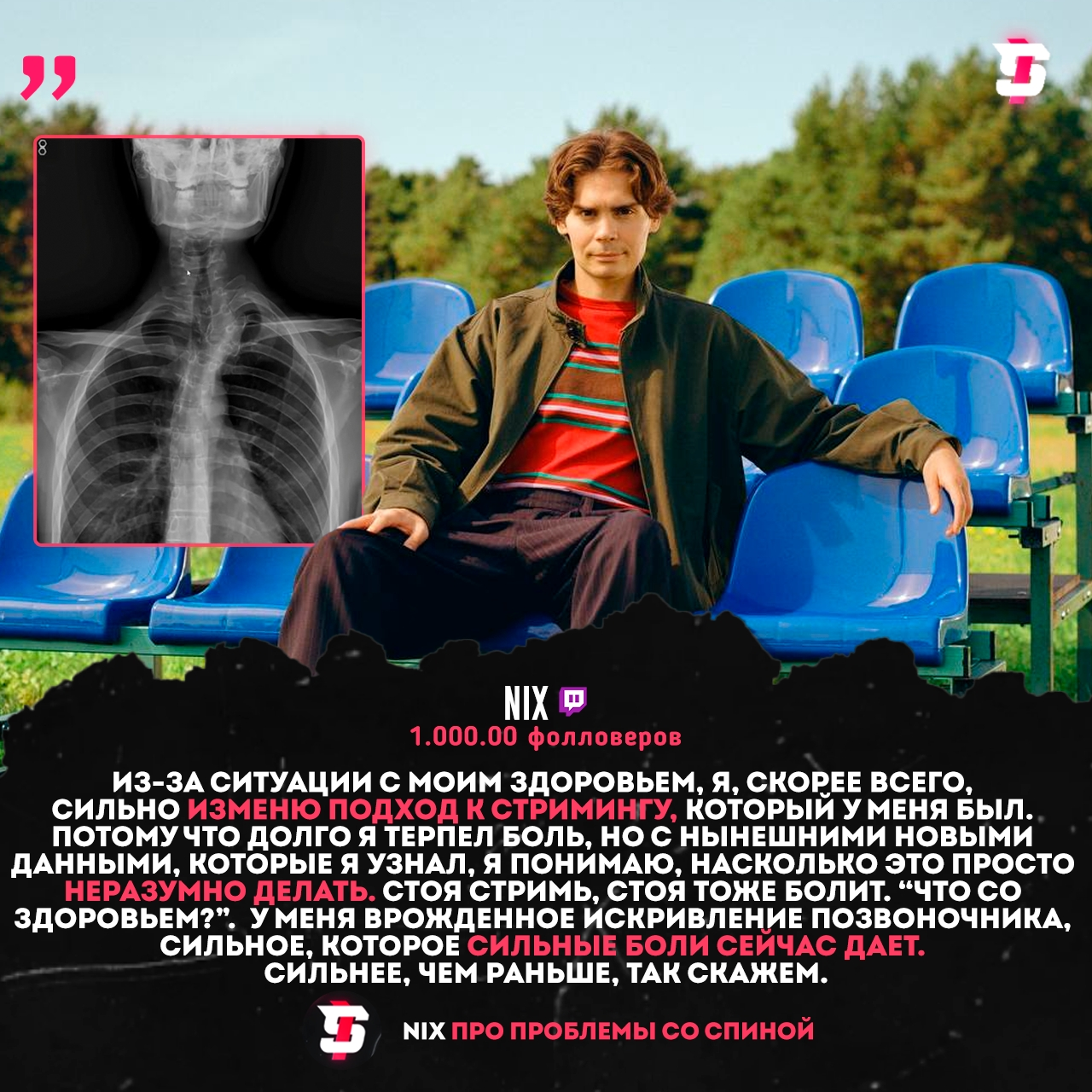 Сегодня у никса на стриме нерв защемило.Прикиньте у чела врожденка со спиной и в юности он бухал и наркотики юзал, а теперь типа зожник, но не может накачать мышцы спины из за фруктоедства и по прежнему страдает вместо того чтобы реально накачать спину и нормальную диету с белком сделать, но при этом реально тренируется и поддерживает дисциплину без результата.