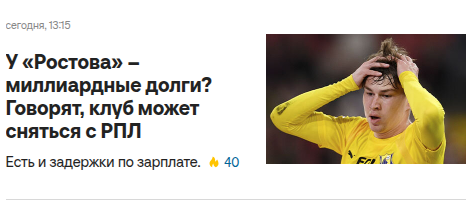 >>25863439 В Ростове всегда херь какая-то творилась с финансами, сейчас опять вроде бывший владелец грек возвращается, который в Греции после матча на стадионе со стволом ходил
