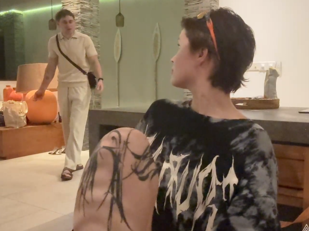 ща анка кинула обидку на суслика за то что он типа грубо её хватанул за ногу, здравый атлет не может блядину выпроводить с виллы, пошёл за охраной, бхахахавхах