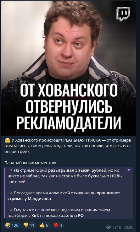 со всеми так, как только переход на ботов стример угасает, перестаёт завозить и доставлять качественный контент интересный, он теряет контакт с живой аудиторией перестаёт получать отклик н свои действия и теряет берега