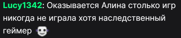 алинка по очкам один хуй сливает, за то время пока она 1 пройдёт, остальные 2-3, я хуй знает чё она так радовалась, типо ей морально проще проиграть с любимой игрой?