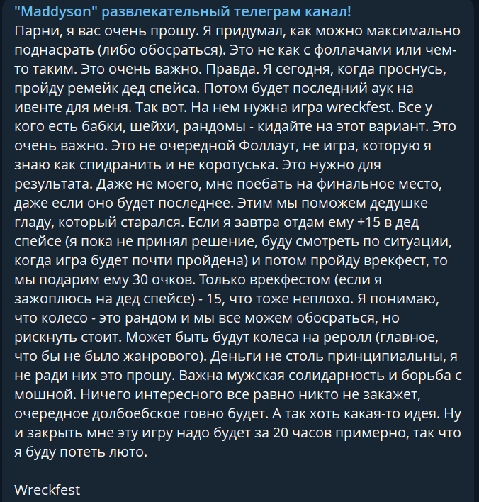 >>25868708 я правильно понимаю Мэд хочет помоч деду чтобы тот не занял последнее место??? (т к там ринчик дышит в спину деду кажетсчя его обгонит)..кароч поднасрать ринше?