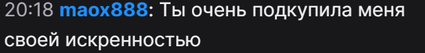 А теперь слушай сюда Алина. Я знаю что ты тут сидишь периодически и ты прочитаешь это. Я на самом деле не положительный персонаж. Я эгоистичный, самовлюблённый человек, который делает всё, лишь бы мне было хорошо, особенно за счёт других. Знакомо? Уверен что знакомо. Думаю ты поймёшь кто я. Аббревиатура MB подскажет)