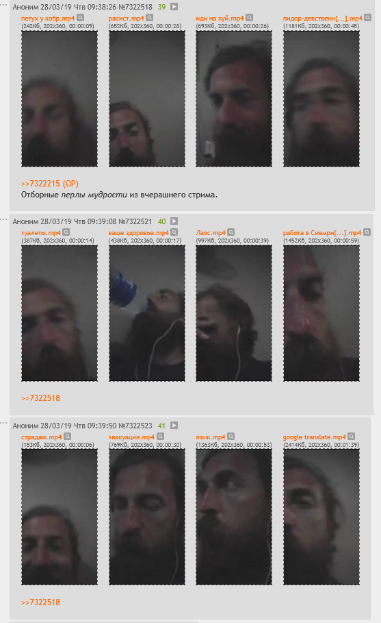 Ещё интересно, какая была интенсивность постинга видосов. Как я понимаю, было время зимнего (2017/2018) молчания Бороды, под страхом козней Крысы-куна. Потом он разошёлся, встреча с Механиком как будто приподняла ДС. И во время винницкого трипа Борода довольно плотно как будто бы окуклился. Потом, вплоть до кончины, активно постил видосы на ютубе, но явно чувствовалась уже заёбанность в голосе на последних видео. - но это всё события последнего ютуб канала. А как было в 2016-2017?