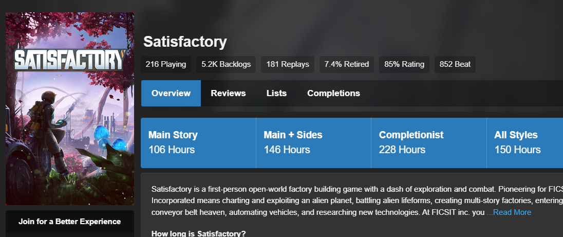 Тимофей решил проходить Сатисфактори. Он принял решение, не проверив инфу на HLTB.
