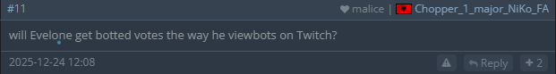 >>25870588 Конечно не первый я тут в основном про него и его шизу и пишу, но вот проверил офлайн чат и кто щас сидит у опасного Алёши в зрителях решил чисто случайно, сам просто заходил глянуть клипы интересные с вчерашнего стрима