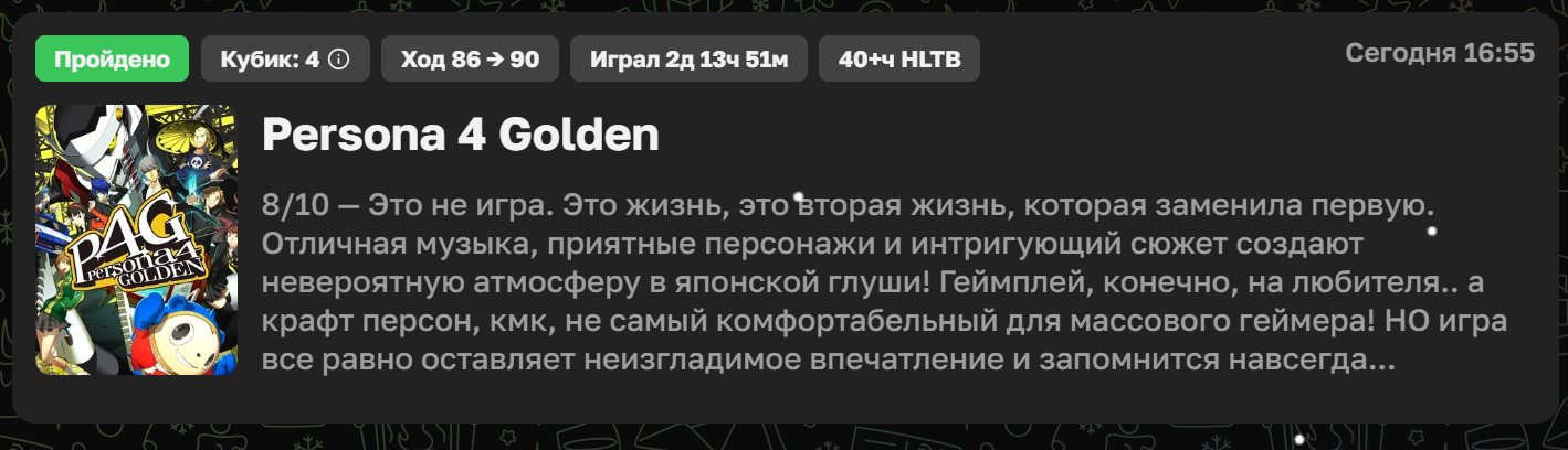 >>25873972 >рогалики за один цикл закрытый Хейдес это не рогалик, а приключенческая игра где смерть внутри цикла объясняется нарративом. Так что там один цикл точно не является прохождением, а по другим нужно смотреть
