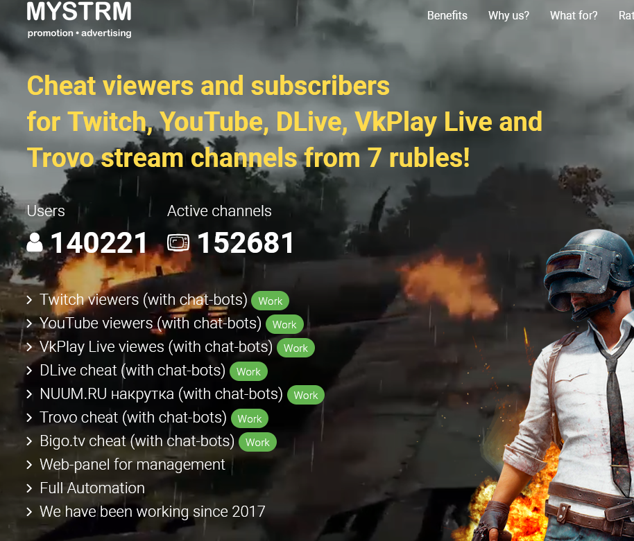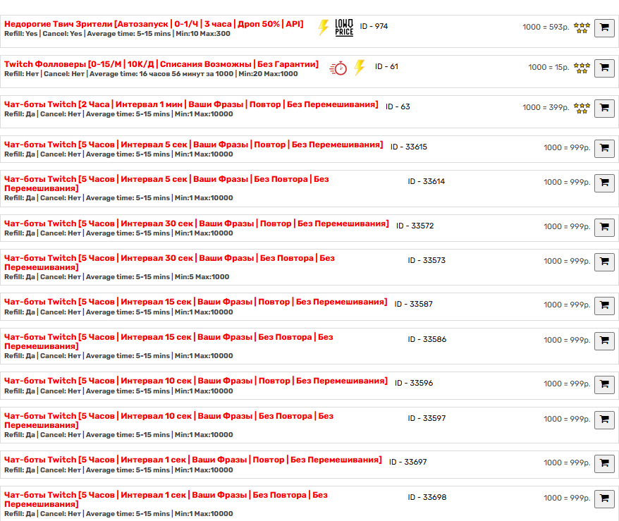 Сюда смотри. Обещают баг твитча через 15 минут и шанс в 50% на баг твитча во время оплаченных минут На час стрима 4к рублей, а на полноценную трёх часовую открутку 12к