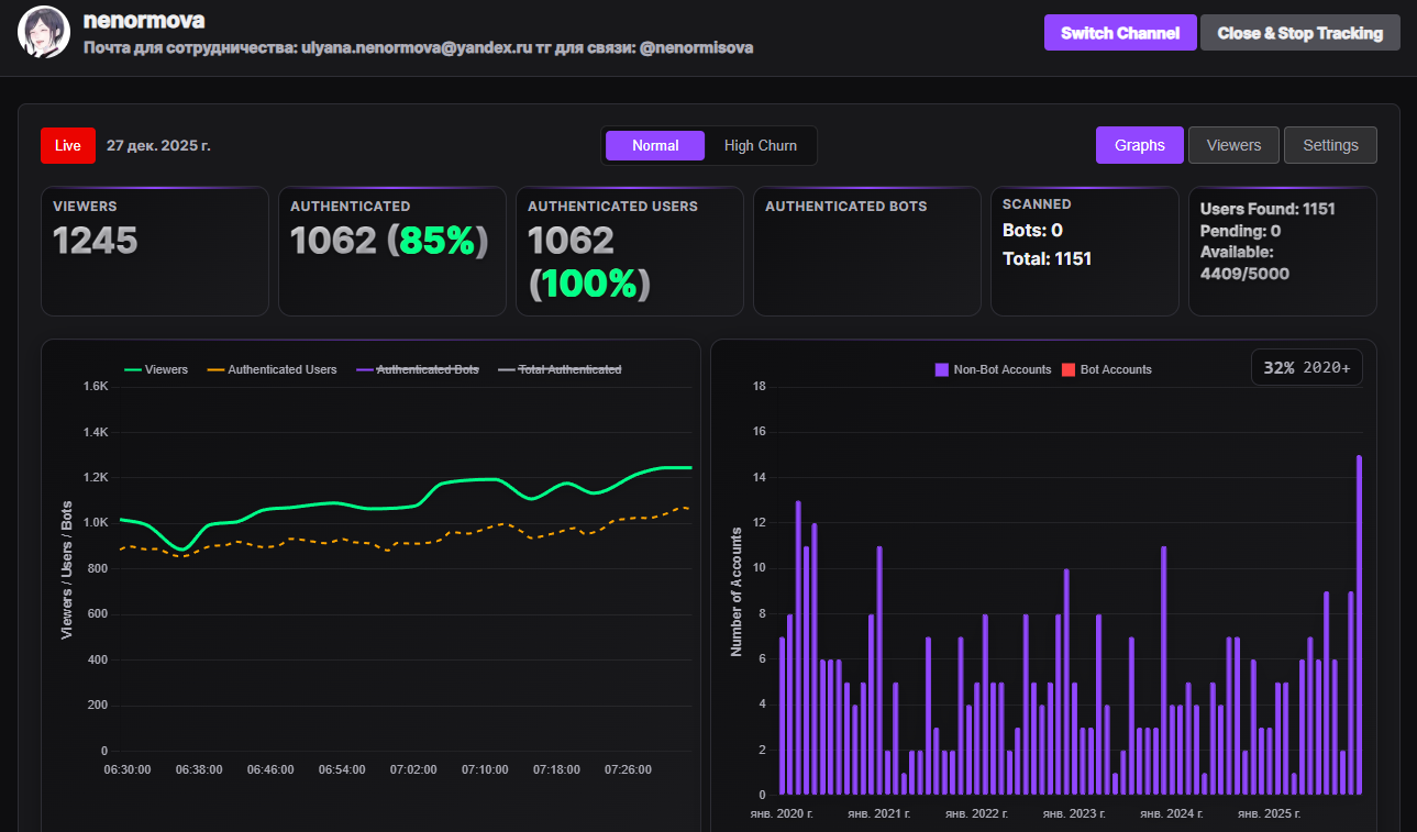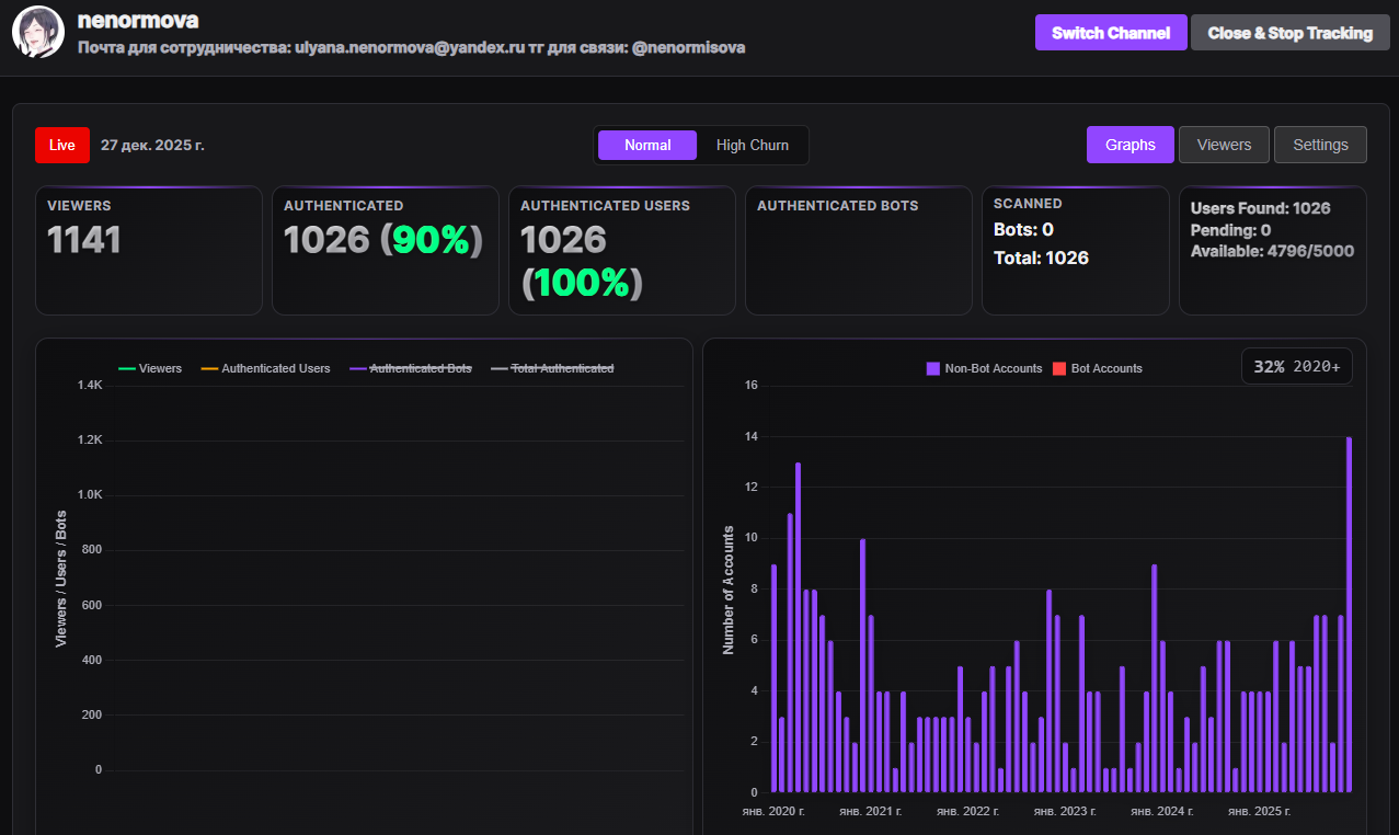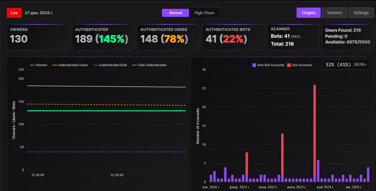 >>25899425 >>25899427 Два дауна, которые не знают, что тут показывает авторизованных ботов. Сервис трекает аккаунты зареганные в одно время, которые фолловились в один день на множество каналов и так далее и другие параметры.