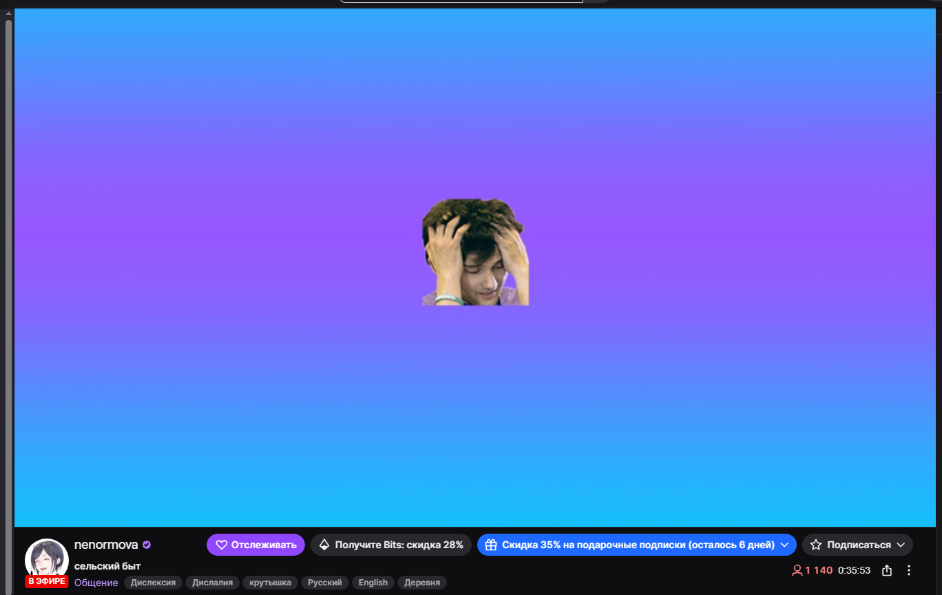 >>25882592 >>25882623 Я тоже никого из названных не смотрю и на твитче не сижу. Копроселову немного смотрел и получил ущерб для мозга и искажение здравого смысла от ее ахуенных стримов, возвращаю полученное в треде