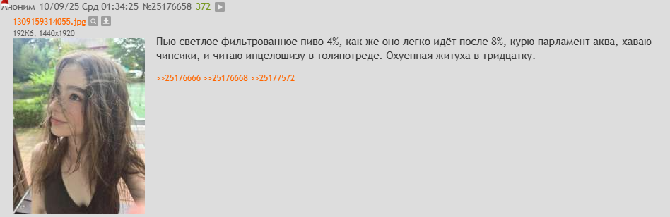 Я бухаю уже двое суток, сначала бухал до утра и должен был уже идти спать, но было утро, вместо сна я пошёл в магаз и взял ещё пива. Скроллил треды и тг-чаты, переписывался со знакомым в телеге. Далее я не заметил, как отрезвел и мне захотелось ещё пивка, я пошёл в пивнуху и взял пару литров. Если честно, я мог бы выпить ещё, но рубит пиздец. С завтрашнего дня я больше не пью, уже забыл, какого это быть трезвым. Но что-то мне подсказывает, что вечером следующего дня я снова накидаюсь.