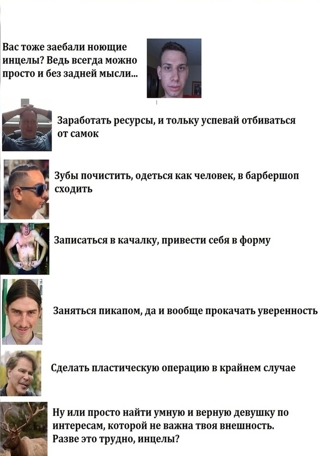Красивые блондинки 6+ из 10 высокие ненавидят омеганов и лошков, даже если он 190см и 6 из 10, всегда дают узбекам, гопникам с плоскими затылками и угрями прыщами на щеках, которые на всю жизнь остаются, и т.д. Потому что нормисопрошивка решает сильнее внешки. Не светят никогда, светят только всратки на 2 балла ниже, с которыми из милосердия не хочется встречаться, чтобы не травмировать их, что они в тебя влюбятся и будут страдать, если ты их бросишь