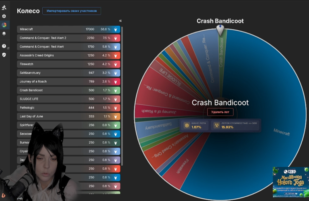 Нарушение правил на стриме Алины Рин за последние 24 часа Прохождение лайс оф пи с подсказками из чата Реквест игры на ауке (х2) Принятие донатов на усмотрение стримера (х3) Реролл без штрафа