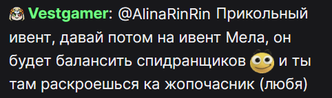 в чатах прошел слух, что IlyaSnow_ (разработчик ивента) - тот самый симп алинырин, который задонатил на короткие игры алинерин и задонатил на редалерт жопичу, чтобы его задушить