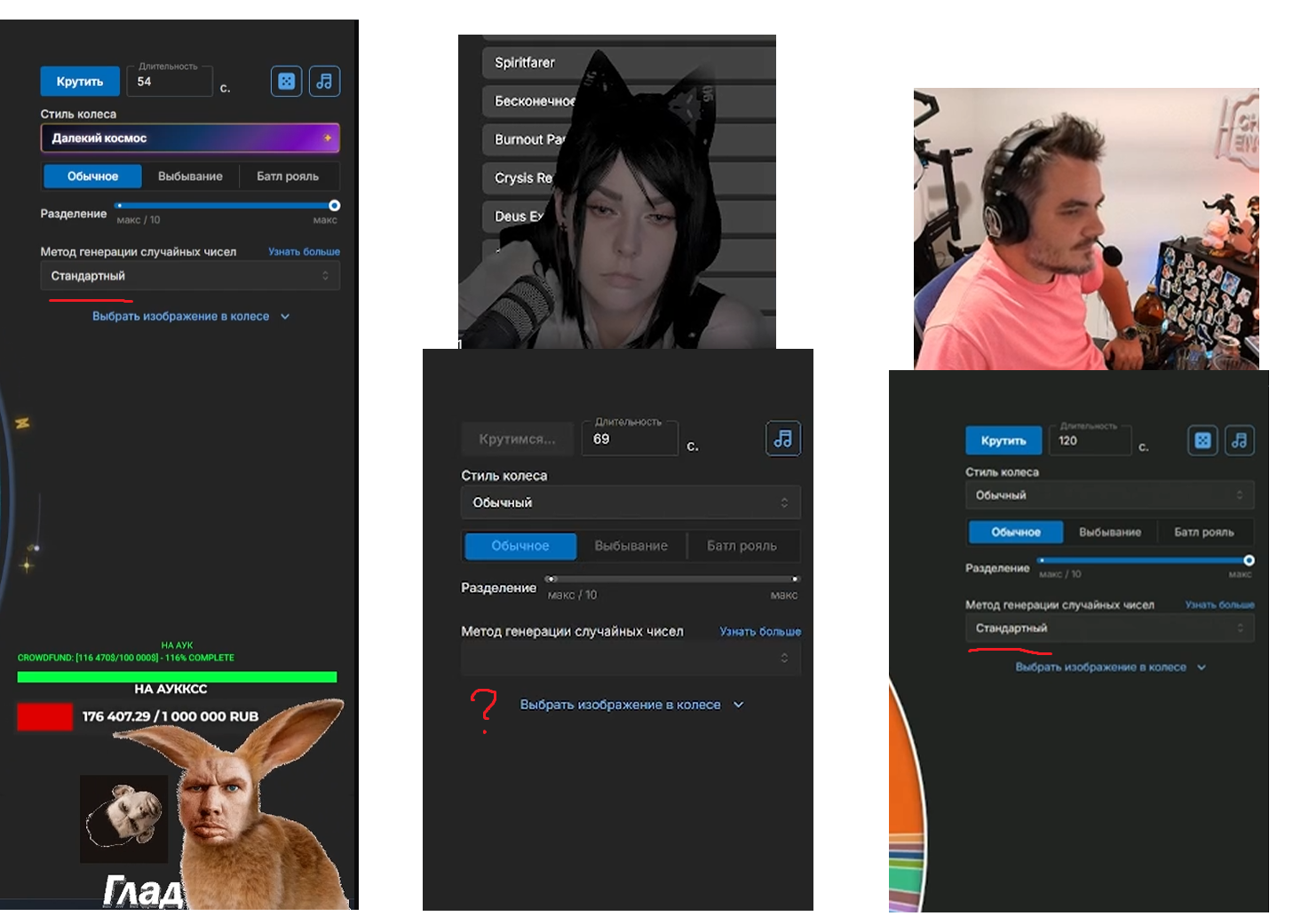 Короче, чекайте. Есть чел, который занимается наёбом рандомайзеров, продаёт игрушку, которая даёт тебе любой желаемый результат на всех рандомайзерах, включая колесо аука. При этом всё делается на оригинальных сайтах.