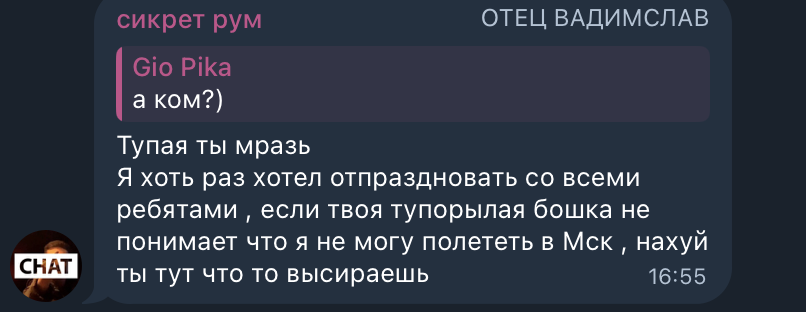 >>25890905 Напоминаю его же слова «Тупая ты мразь Я хоть раз хотел отпраздновать со всеми ребятами, если твоя тупорылая бошка не понимает что я не могу полететь в Мск, нахуй ты тут что то высираешь» В итоге ребята пришли, да может быть не все, но он всеровно недоволен, точно дело не в стримах)
