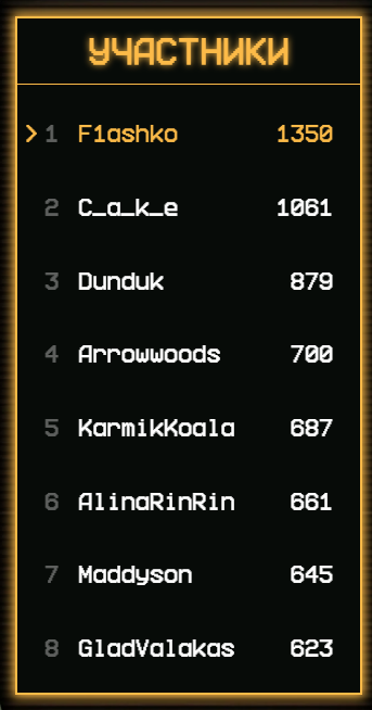 прогнозы в конце ивента: жопич 8е место, валакас 7е место, аравудус 6е место, алинарин 5е место