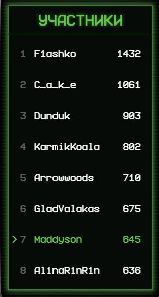 Список достижений Алины Рин: 1. Намошнила на деда ветерана Валакаса, заставила играть в старое говно 2. Подослала теневого донатить Мэду на старое говно 3. Безнаказанно сжульничала с аукционами (не обновлялось время) 4. Намошнила себе +25 очков за гонки